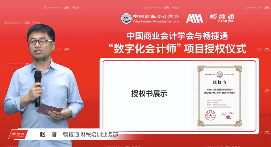 畅捷通财税培训业务部赵睿老师公布首批授权名单本次发布会采取线下和线上相结合的形式,来自全国各地的数字化会计师学员、财会从业者和会计教育机构通过直播形式参加发布会,学习数字化最新最前沿的动态资讯,进一步加深了对数字时代发展趋势的了解,提高了对数字化会计师项目的认知,提升了数字化会计的知识技能。