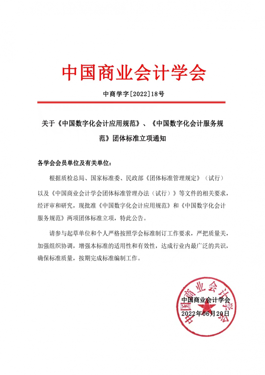 关于《中国数字化会计应用规范》、《中国数字化会计服务规范》团体标准立项通知