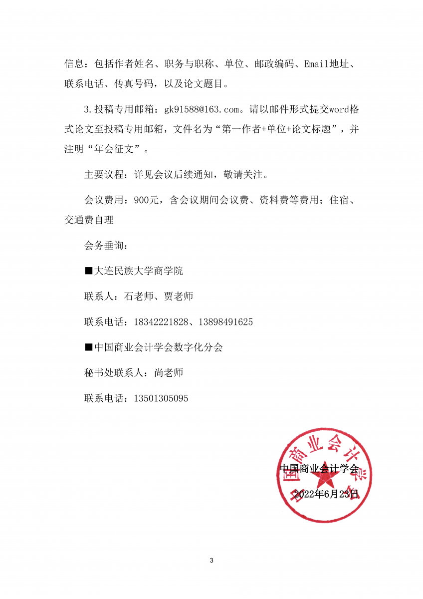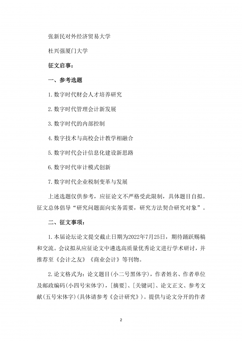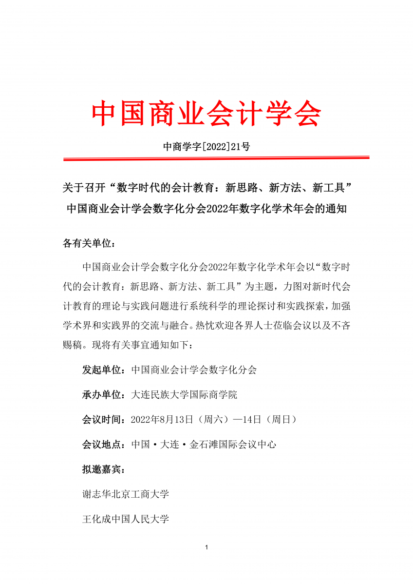 关于召开“数字时代的会计教育:新思路、新方法、新工具”中国商业会计学会数字化分会2022年数字化学术年会的通知