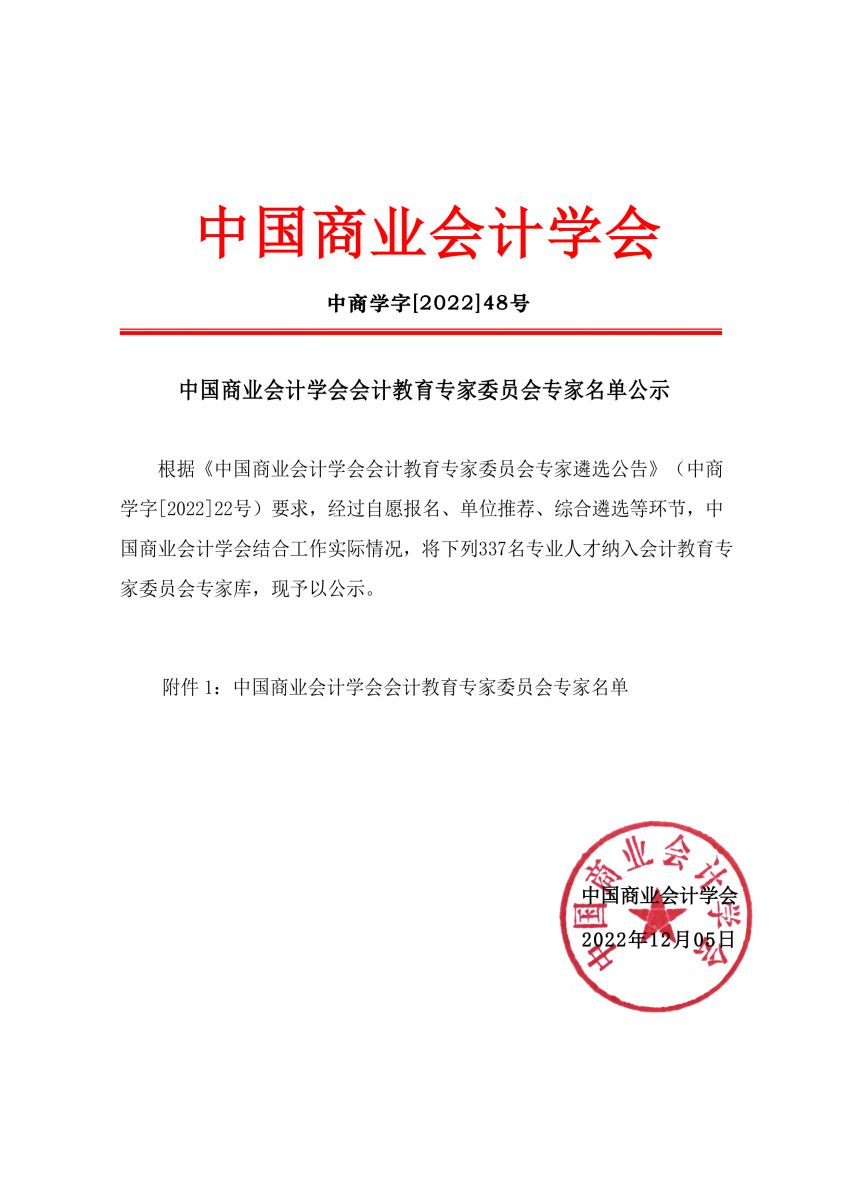 中国商业会计学会会计教育专家委员会专家名单公示