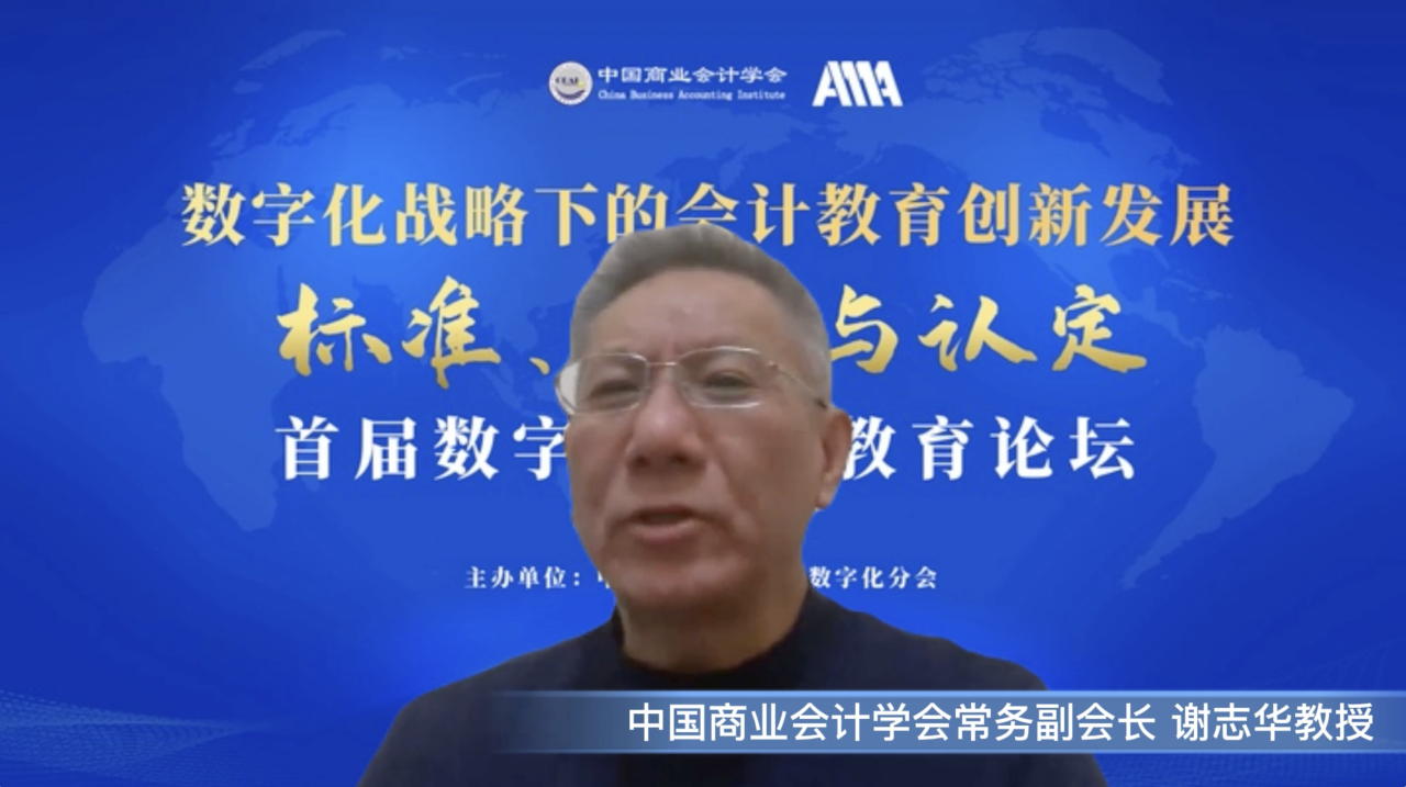 12月15日,由中国商业会计学会数字化分会举办的首届数字化会计教育论坛圆满落幕,论坛以“数字化战略下的会计教育创新发展:标准、建设与认定”为主题,中国商业会计学会常务副会长谢志华教授、学会副会长张新民教授、学会副会长、职教分会会长赵丽生教授、学会秘书长黄国成博士、学会副秘书长、数字化分会分会长马瑞阳博士,广东外语外贸大学南国商学院执行校长王华教授、首都经济贸易大学杨世忠教授、贵州财经职业学院副院长李德建教授、安徽商贸职业技术学院会计学院院长丁增稳教授,高顿教育集团副总裁舒畅先生、ACCA&产教融合研究院院长龚玲玲博士、产教融合中心总经理柯宇先生等来自学会、院校和企业的各方代表共同出席论坛,中国商业会计学会教育专家委会秘书长浦军教授主持论坛。