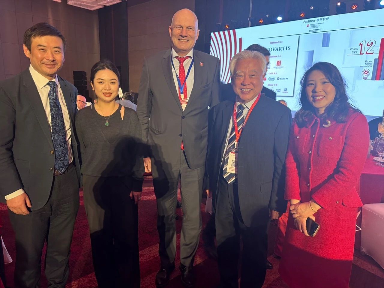 图一从左到右依次为浦军教授、马瑞阳会长、瑞士驻中国大使白瑞谊、前中国驻瑞士大使董津义、中瑞商会董事孙科
