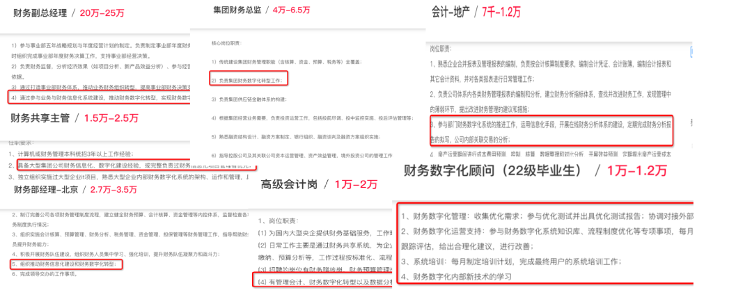 在中国经济转型和国际环境的巨变下,中国企业数字化转型发展面临巨大的机遇与挑战,迫切需要懂会计、懂业务、懂技术的数字化会计人才,从而使会计在组织提质增效、构建核心竞争力中发挥重要作用。因此,在企业财务相关岗位招聘中,从财务专员到财务总监,“财务数字化”的岗位要求成为越来越多企业财务招聘的标配要求。