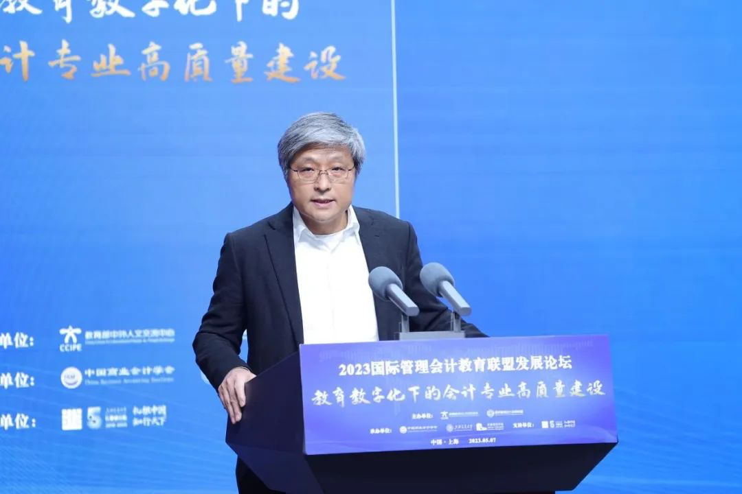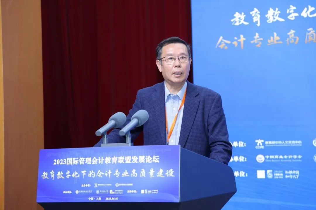 2023年5月7日,由教育部中外人文交流中心、国际管理会计教育联盟(下称“联盟”)主办,中国商业会计学会、上海交通大学安泰经济与管理学院承办的2023国际管理会计教育联盟发展论坛(下称“发展论坛”)在上海成功召开。本届发展论坛以“教育数字化的会计专业高质量建设”为主题,旨在贯彻落实党的二十大精神和有关文件要求,大力推进教育数字化战略行动,助力管理会计学科建设与科学研究,完善国际管理会计人才培养,打造管理会计教育中外人文交流高端平台,服务教育对外开放和中外人文交流事业发展。中国商业会计学会常务副会长谢志华教授,副会长、职教分会会长赵丽生教授,副秘书长、数字化分会会长马瑞阳博士在发展论坛中发表重要讲话并在巅峰对话环节发布了基于836所院校26.2万师生有关数据的《数字化会计教育(DAEC)认定阶段性统计报告》(以下简称《报告》)以及国内首个财经GPT“Ai管会GPT”