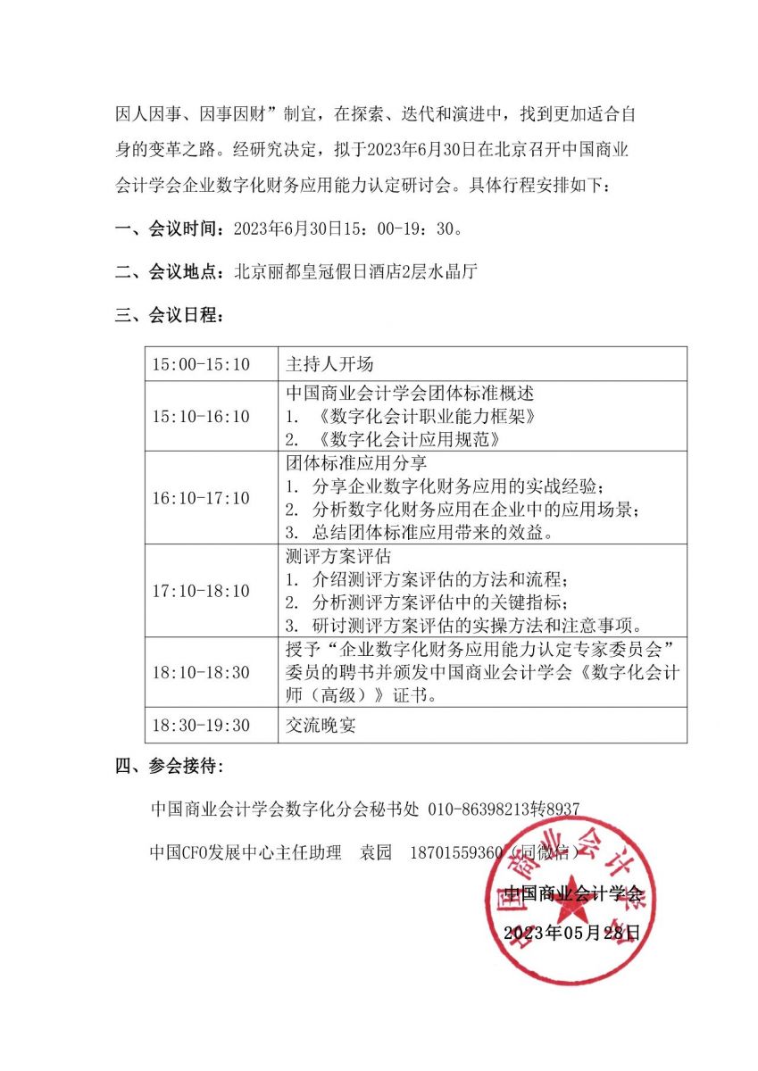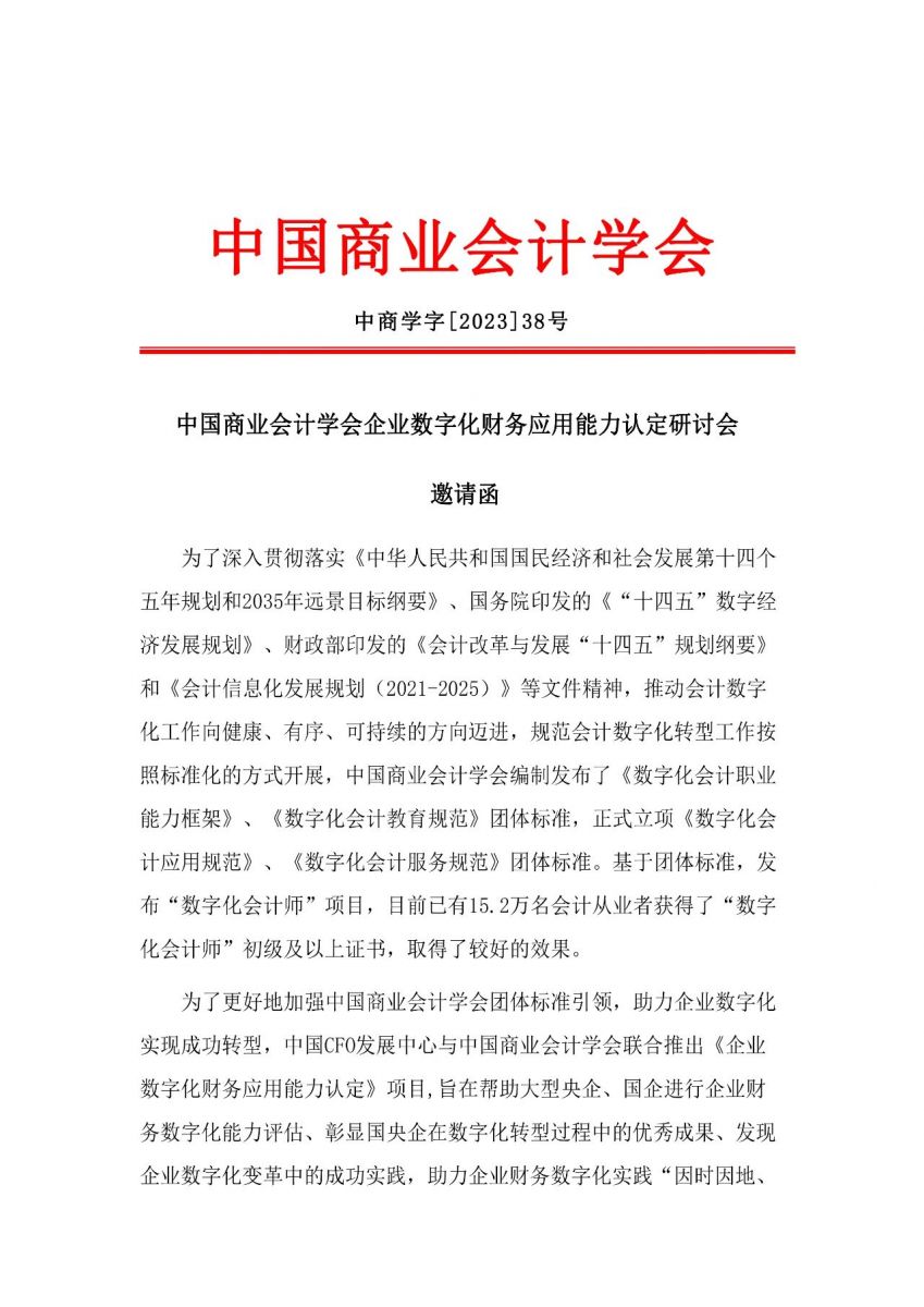 中国商业会计学会企业数字化财务应用能力认定研讨会邀请函
