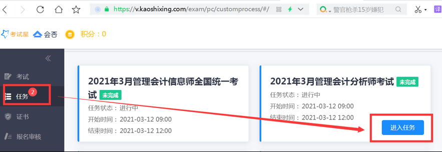 九、点击提交后,点击“返回任务”,进入下一个科目的考试