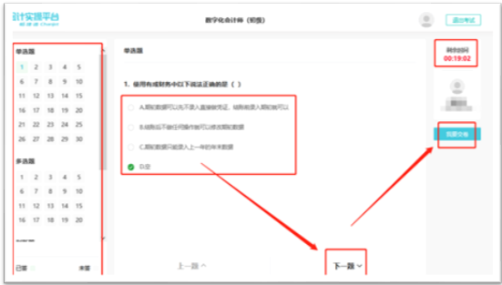 右侧是显示考试剩余时间以及交卷功能;