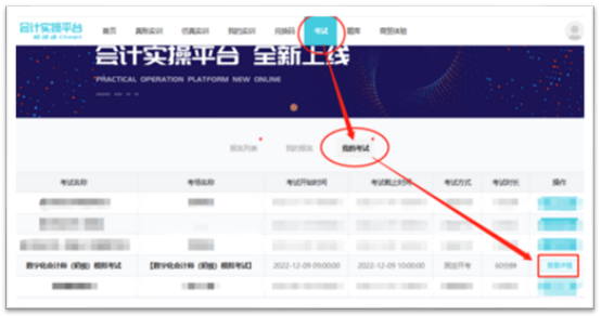 依次点击“考试”、“我的考试”和"查看详情"(流程与初次进入考试页面相同)