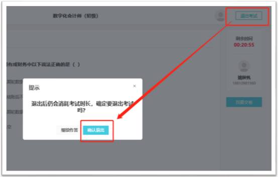 如果理论考试时不小心误点击了右上角的“退出考试”和“确认退出”