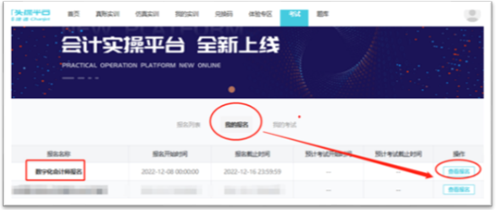 报名完成后,点击“报名列表”右侧的“我的报名”,点击“数字化会计师报名”最右侧的“查看报名”,确认报名信息