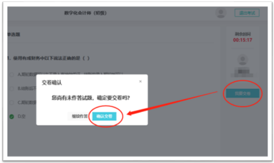 再次点击“确认交卷”
