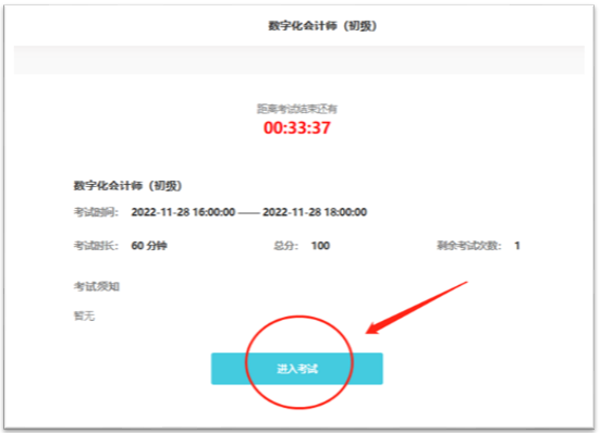 如果开考时间已到,点击“进入考试”