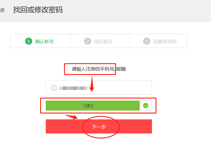 输入手机号码后(必须是报名时登记的手机号),拖动滑块到右边,再点击下一步