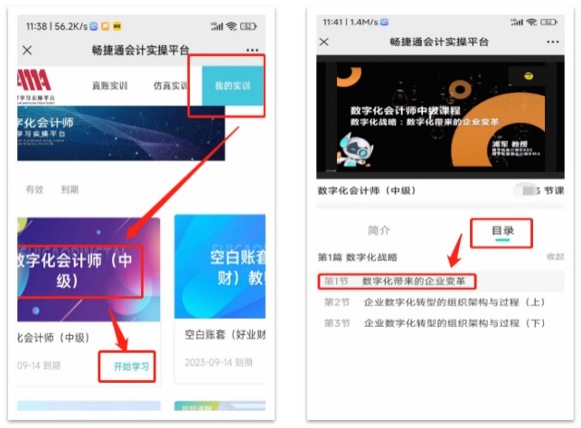数字化会计师(中级)手机端 学习操作指引