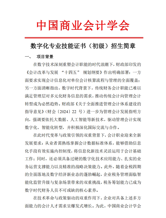 DMA数字化管理会计师(初级)-- 管理会计信息师 招生简章(2020版)