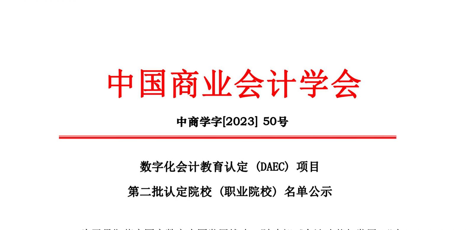 数字化会计教育认定(DAEC)项目第二批认定院校(职业院校)名单公示