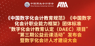 《中国数字化会计教育规范》、《中国数字化会计职业能力框架》团体标准、 《数字化会计教育认定(DAEC)项目》、“第三期公益云课活动”发布会圆满举办